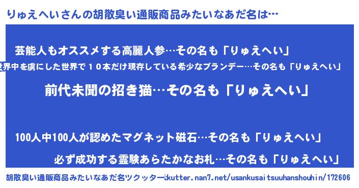 | ヘコむあだ名 | 『りゅえへい(笑)』『りゅにー』 |