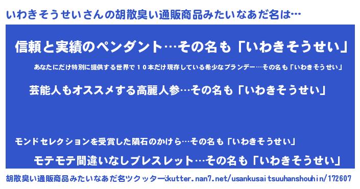 | 意味不明あだ名 | 『自称いわきそうせい』 |