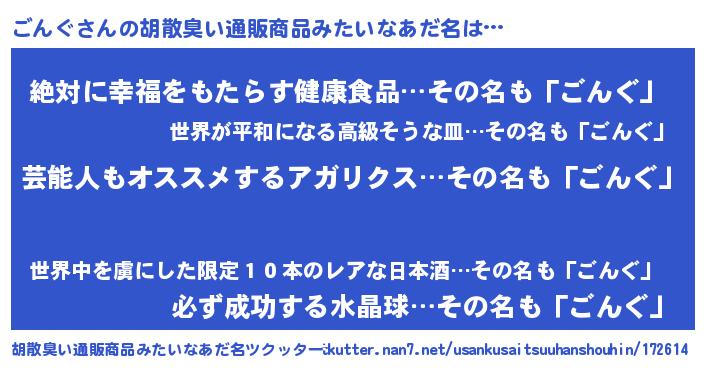 | 意味不明あだ名 | 『自称ごんぐ』『永久保存ごんぐ』 |