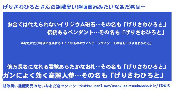 | 意味不明あだ名 | 『住所不定無職げりさわひろと(2歳)』 |