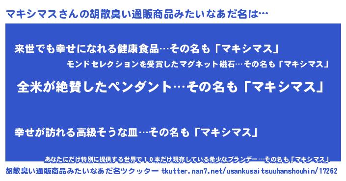 | ヘコむあだ名 | 『マキぷりん』『マキシマス(笑)』 |