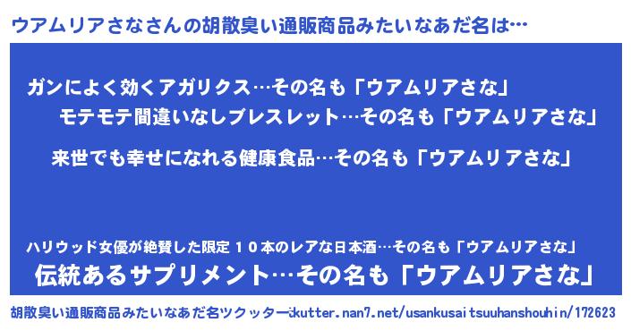 ウアムリアさなさんの胡散臭い通販商品みたいなあだ名をツクッター!