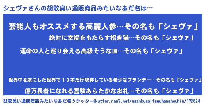 | 意味不明あだ名 | 『シェヴァフォーエバー』『自称シェヴァ』 |