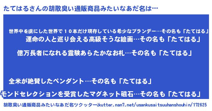 | ヘコむあだ名 | 『たてもー』『なまこ酢』『たて太郎』 |