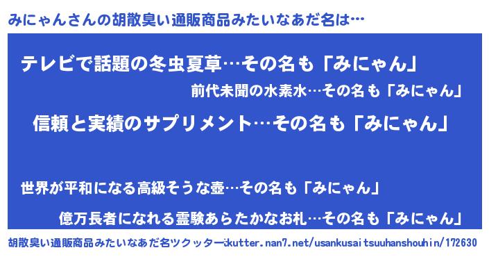 | 意味不明あだ名 | 『とにかく怪しいみにゃん』 |