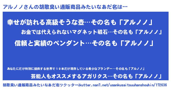 | 意味不明あだ名 | 『とにかく怪しいアルノノ』 |