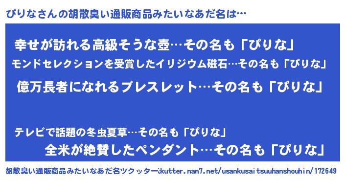 | ヒーロー風カッコイイあだ名 | 『スーパーピリナ』『ウルトラぴりなマン』 |