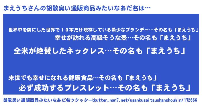 | 意味不明あだ名 | 『とにかく怪しいまえうち』 |