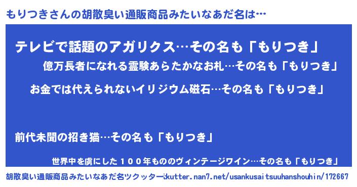 | ヘコむあだ名 | 『もりにゅー』『もりつき(笑)』 |