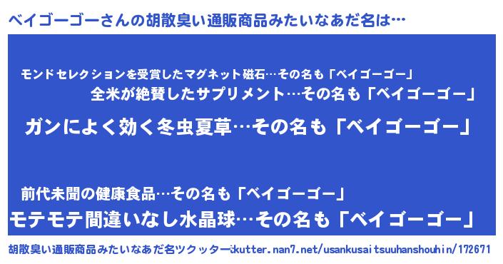 | 意味不明あだ名 | 『自称ベイゴーゴー』 |