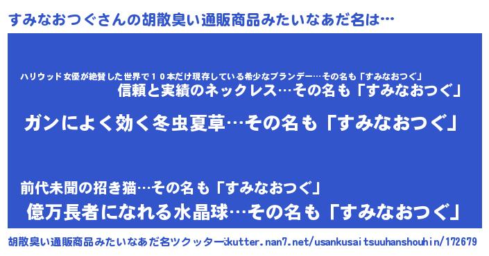 | 女子向けラノベタイトル風あだ名 | 『すみなおつぐなんてお断りですっ。』 |