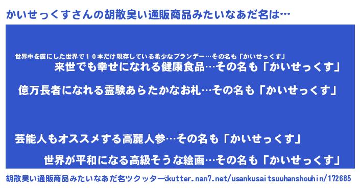 | 伝説のあだ名 | 『封印されしスナイパーかいせっくす』 |