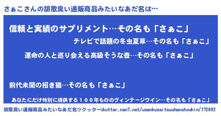 | 意味不明あだ名 | 『さぁこフォーエバー』『ニラ科さぁこ属』 |