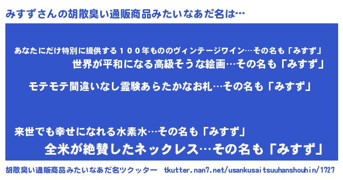 | ヘコむあだ名 | 『みすっふぃ~』『みすっぺ』 |