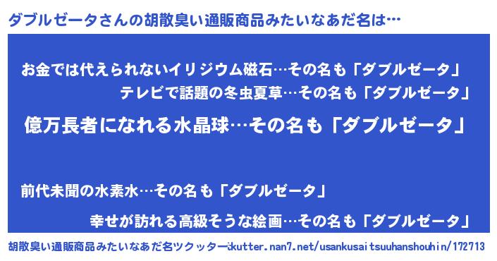 | 男性向けラノベタイトル風あだ名 | 『ダブルゼータアートオンライン』 |