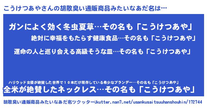 | 意味不明あだ名 | 『こうけつあやフォーエバー』 |