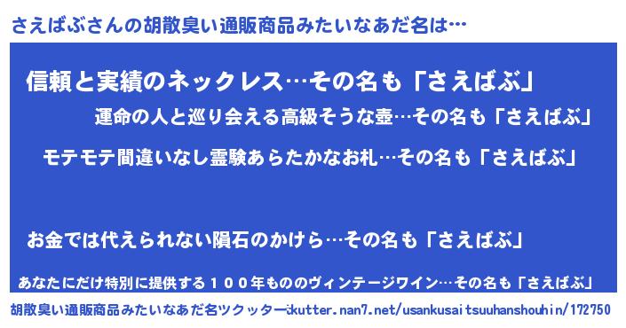 | 男性向けラノベタイトル風あだ名 | 『サエバブアートオンライン』 |