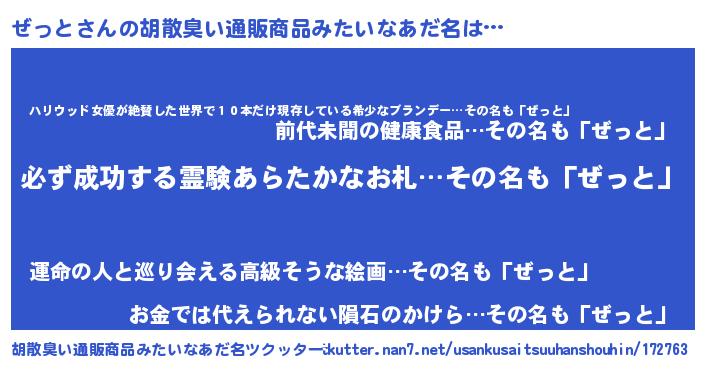 | 男性向けラノベタイトル風あだ名 | 『ゼットスレイヤー』『ぜっとの憂鬱』 |
