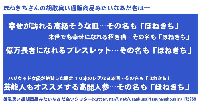 | 意味不明あだ名 | 『ペロリンほねきち』『自称ほねきち』 |