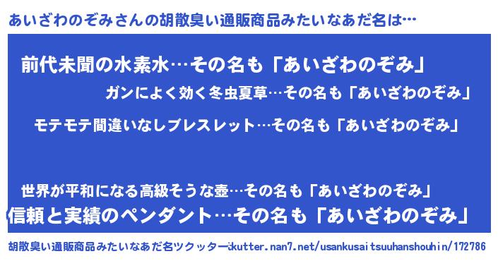 | ヘコむあだ名 | 『あいにー』『あいざわのぞみ(震え声)』 |
