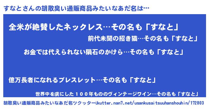 | ヘコむあだ名 | 『すなっぺ』『すなと(苦笑)』 |