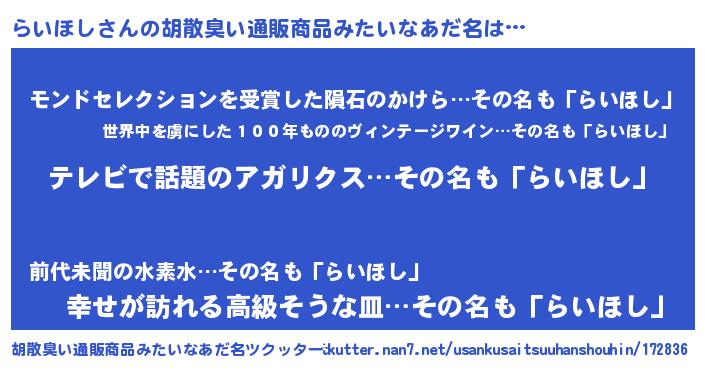 | 意味不明あだ名 | 『自称らいほし』『らいほしフォーエバー』 |