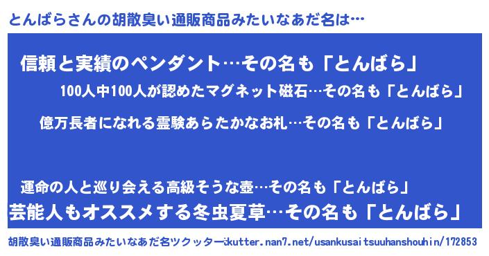 | 意味不明あだ名 | 『ペロリンとんばら』『自称とんばら』 |