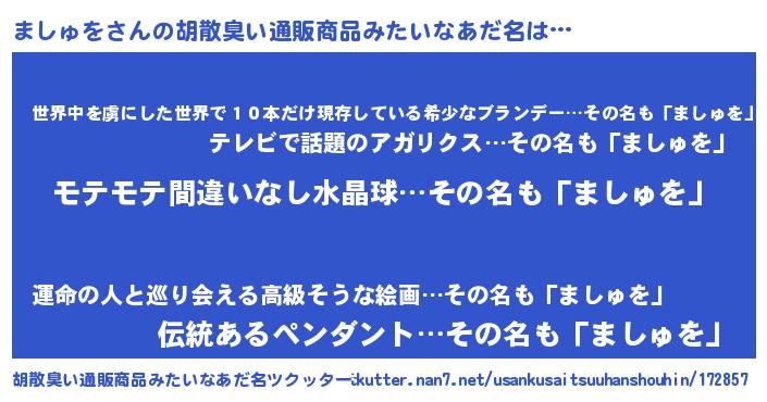 | ヘコむあだ名 | 『ましにゅー』『まし太郎』 |