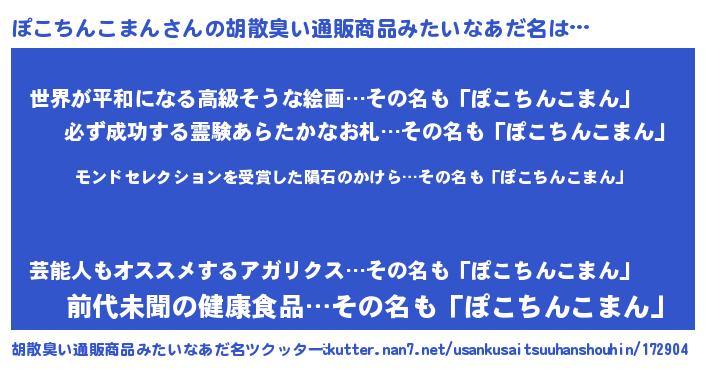 | ヒーロー風カッコイイあだ名 | 『慈愛の使者ぽこちんこまん』 |