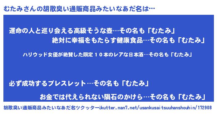 | ヒーロー風カッコイイあだ名 | 『仮面ムタダー』『ウルトラむたみマン』 |
