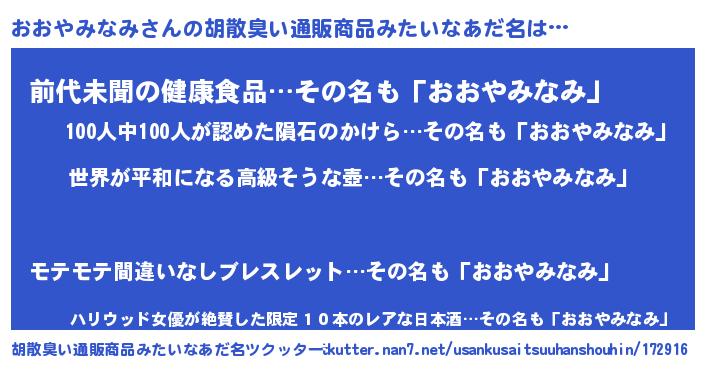 | 意味不明あだ名 | 『おおやみなみフォーエバー』 |