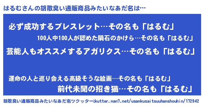 | ヘコむあだ名 | 『はるもー』『はるむ(笑)』『はるお』 |