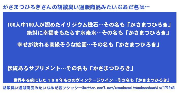 | 肩書あだ名 | 『かさまつひろき総理大臣』 |