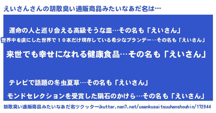 | 意味不明あだ名 | 『永久保存えいさん』 |