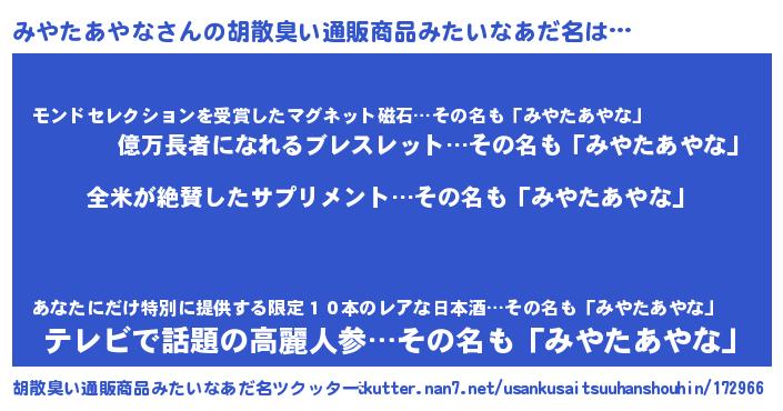 | 肩書あだ名 | 『みやたあやなマネージャー』 |