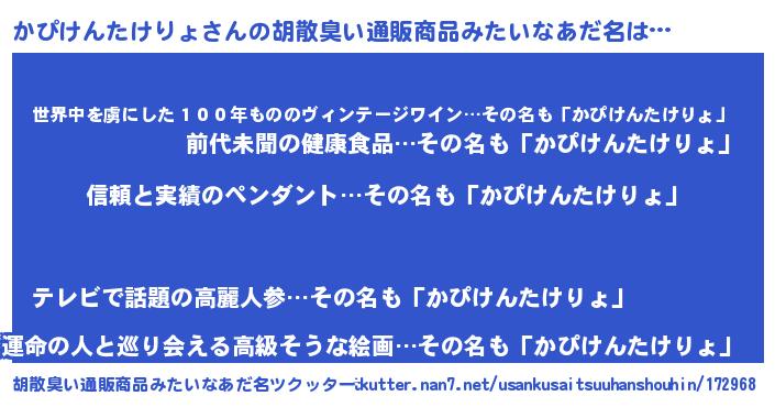 かぴけんたけりょさんの胡散臭い通販商品みたいなあだ名をツクッター!