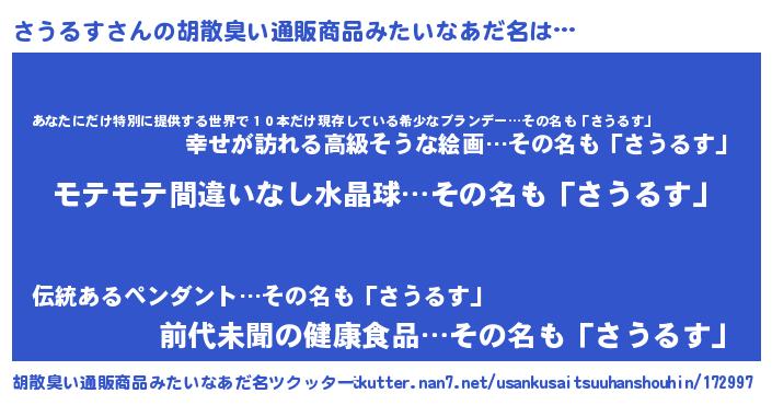 | ヘコむあだ名 | 『さうふぇ~』『さうるす(遠い目)』 |