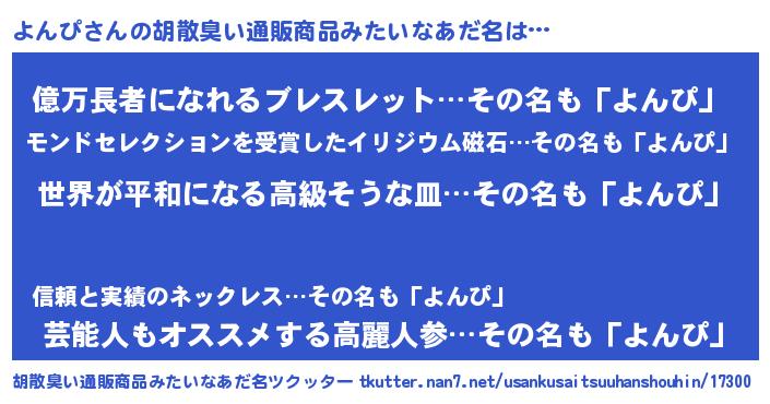 | 恥ずかしいあだ名 | 『よんっちょ』『プリティーよんぴ』 |