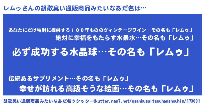| ヘコむあだ名 | 『レムにゅー』『つくし』 |