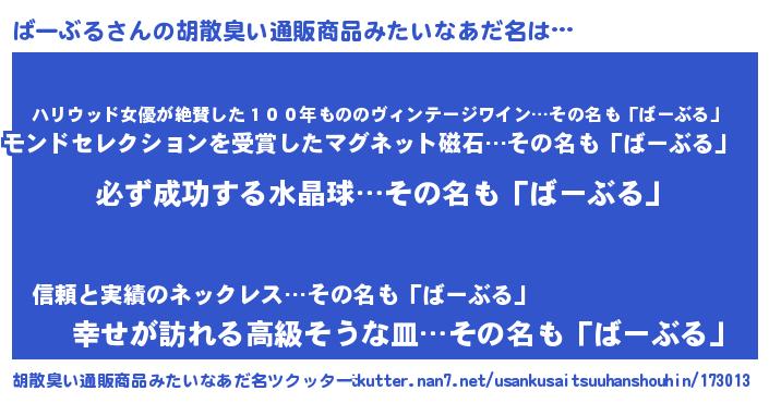 | 女子向けラノベタイトル風あだ名 | 『(仮)ばーぶるのやんごとなき事情』 |