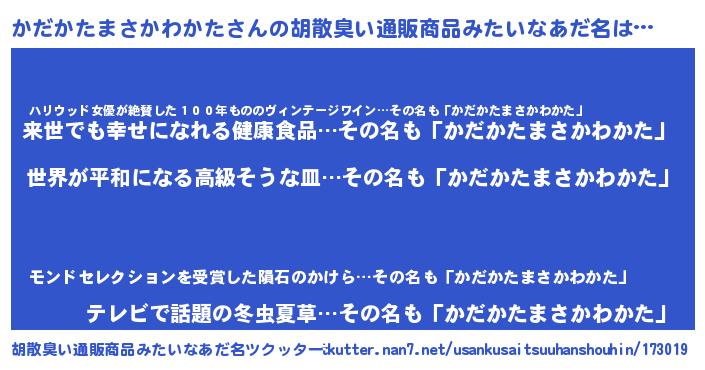 | 欧米人風あだ名 | 『かだかたまさかわかたクリステル』 |