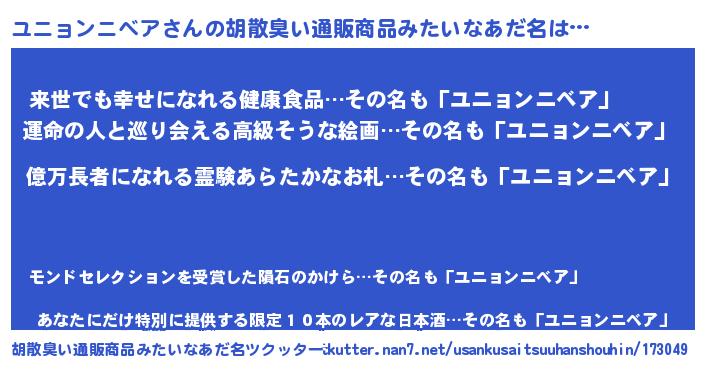 | ヘコむあだ名 | 『ユニっふぃ~』『ユニョンニベア(震え声)』 |