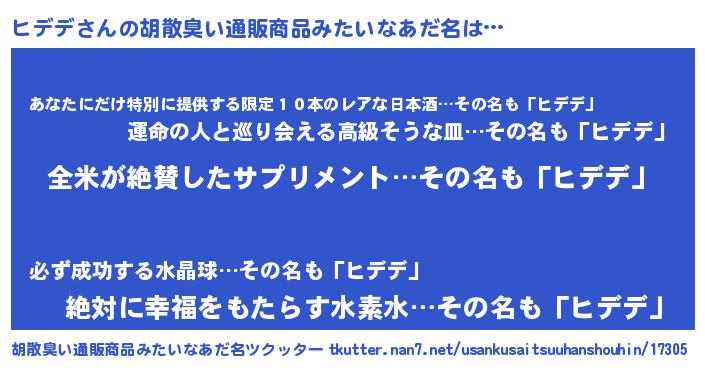 | 意味不明あだ名 | 『とにかく怪しいヒデデ』 |