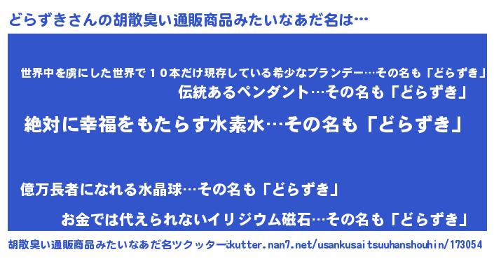 | ヘコむあだ名 | 『どらずき(遠い目)』『どらっちょ』 |