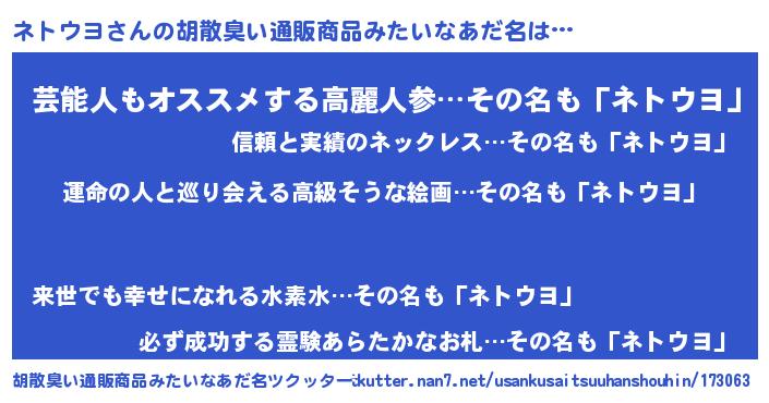 | 可愛いあだ名 | 『ネトちー』『ネトうちぇる』 |