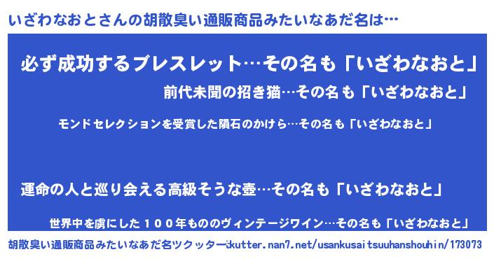 | ヘコむあだ名 | 『いざもー』『いざわなおと(笑)』 |