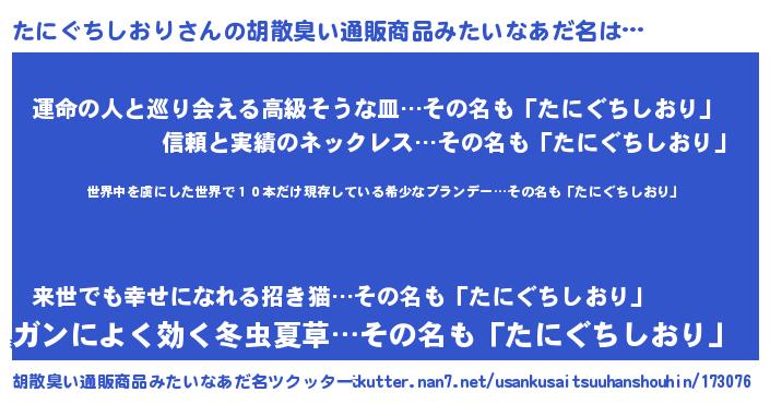 | 意味不明あだ名 | 『住所不定無職たにぐちしおり(98歳)』 |