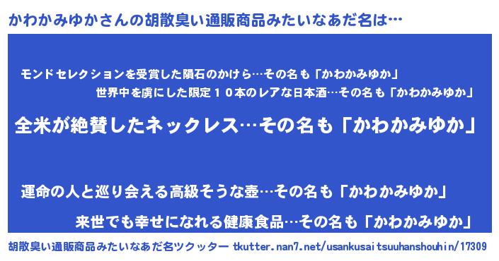 | ヘコむあだ名 | 『かわ太郎』『かわかみゆか(小並感)』 |