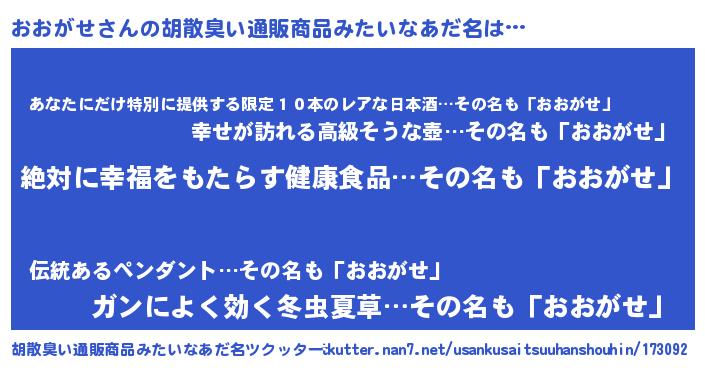 | 意味不明あだ名 | 『永久保存おおがせ』『自称おおがせ』 |