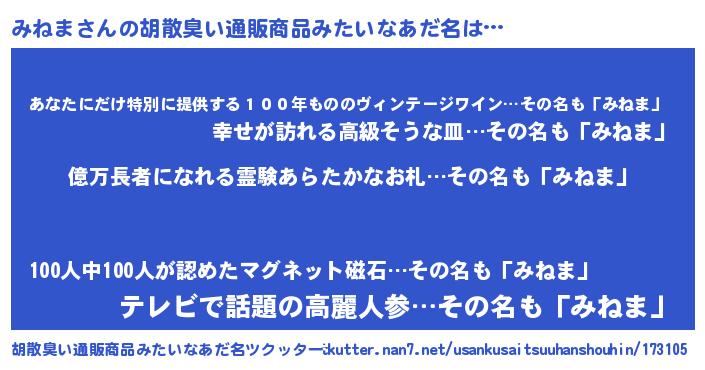 | 恥ずかしいあだ名 | 『プリティーみねま』『ミネマデラックス』 |